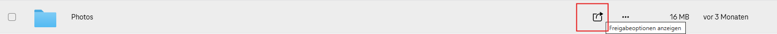 Klicken Sie auf das Freigabesymbol an der entsprechenden Datei oder dem Ordner.